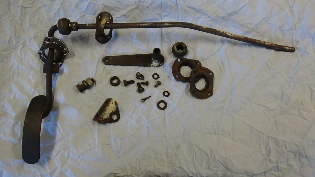 Here is what I currently have found, but parts are still missing, including a spring and some screws, as you also can see on one part, the straight piece has got a bend, this also needs to be fixed again